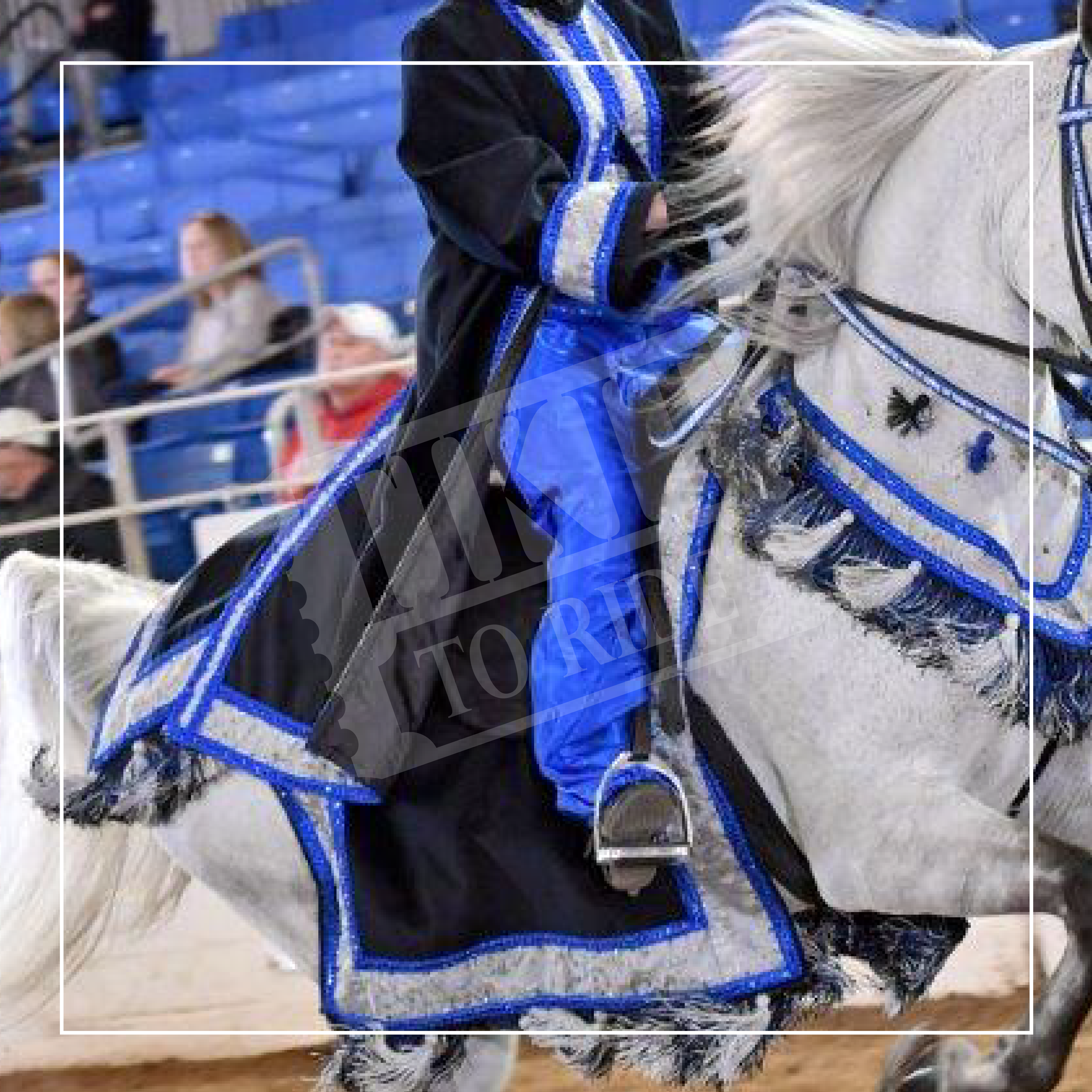 We provides custom and ready-to-wear horse show clothing including: Hunt Dickies, Western Pleasure Jackets and Chaps, Side Saddle Skirts and Outfits (English, Western, and Period Habits), Arabian Native Costumes, and Saddleseat Vests.
